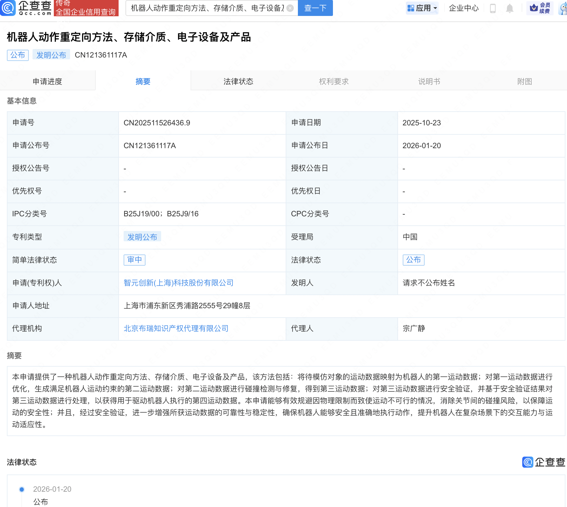 近日,智元机器人关联公司智元创新(上海)科技股份有限公司“机器人动作重定向方法、存储介质、电子设备及产品”专利公布。企查查专利摘要显示,该方法包括:将待模仿对象的运动数据映射为机器人的第一运动数据;对第一运动数据进行优化,生成满足机器人运动约束的第二运动数据;对第二运动数据进行碰撞检测与修复,得到第三运动数据;对第三运动数据进行安全验证,并基于安全验证结果对第三运动数据进行处理,以获得用于驱动机器人执行的第四运动数据。本申请能够有效规避因物理限制而致使运动不可行的情况,消除关节间的碰撞风险,以保障运动的安全性;并且,经过安全验证,进一步增强所获运动数据的可靠性与稳定性,确保机器人能够安全且准确地执行动作,提升机器人在复杂场景下的交互能力与运动适应性。