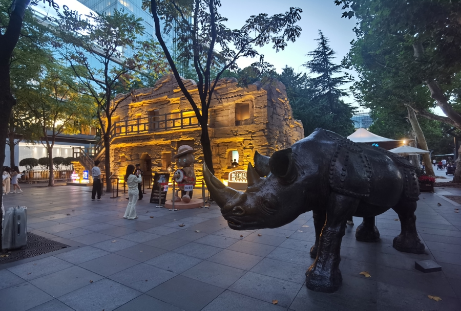 与上海国际光影节相互成就的还有久光百货。上海久光百货营业部经理许晓站在静安公园1号门东侧的“洞见220”快闪体验空间前,推广起久光百货最新的光影节联动活动,光影节期间打卡拍照莫高窟第220窟等比例微缩模型、敦煌文创等光影节商业联动元素,就能到久光领取抵用券,覆盖商场约八成的商户。